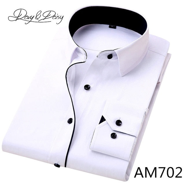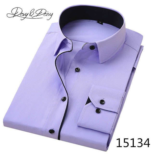 DAVYDAISY High Quality Men Shirt Long Sleeve Twill Solid Formal Business Shirt Brand Man Dress Shirts DS085